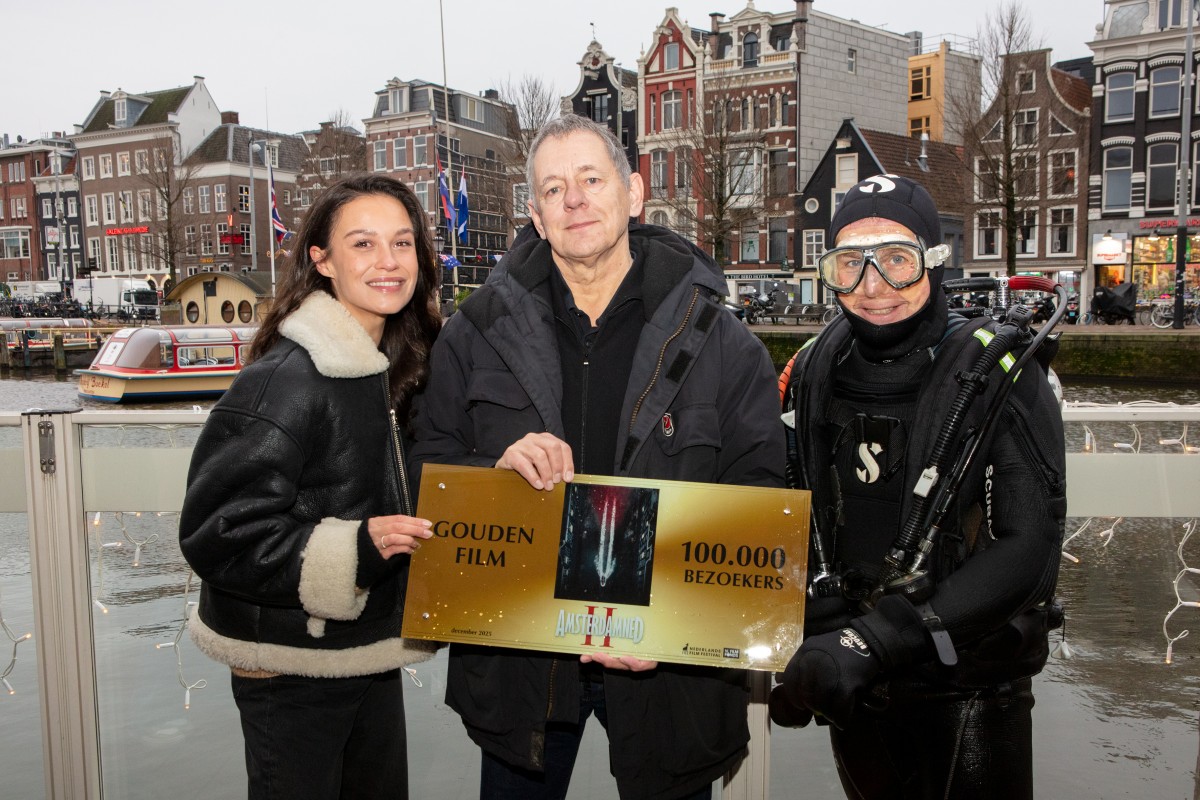 Gouden Film für AMSTERDAMNED II: Taucher überreicht Auszeichnung an Holly Mae Brood und Dick Maas